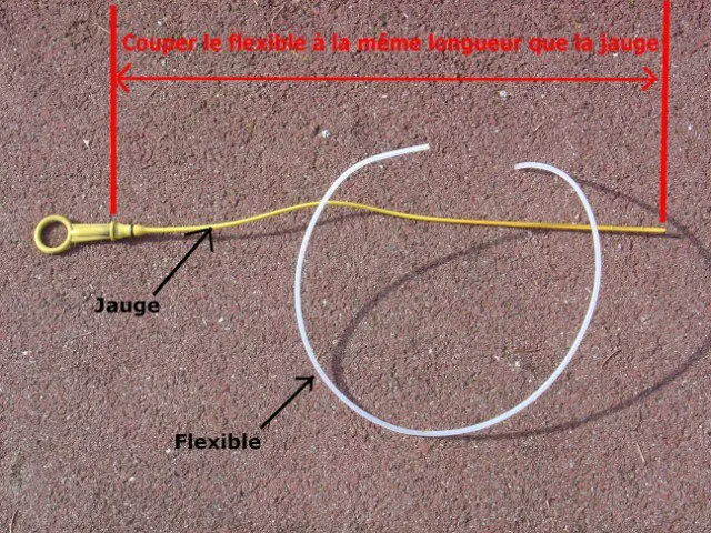 - Coupez le flexible à la même longueur que la jauge.